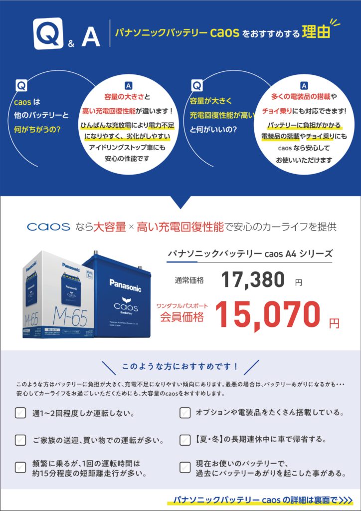 【パナソニック製】カオスバッテリーの詳細につきましては、