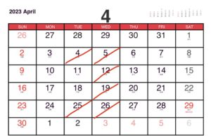 今回は4月の定休日カレンダーになります