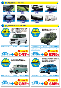 そして、タフトやロッキーなどパーツが多いお車は、7点すべてのセット施工が