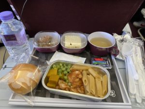 途中の機内食がこちらとなっており、パンの袋はパンパン!!
