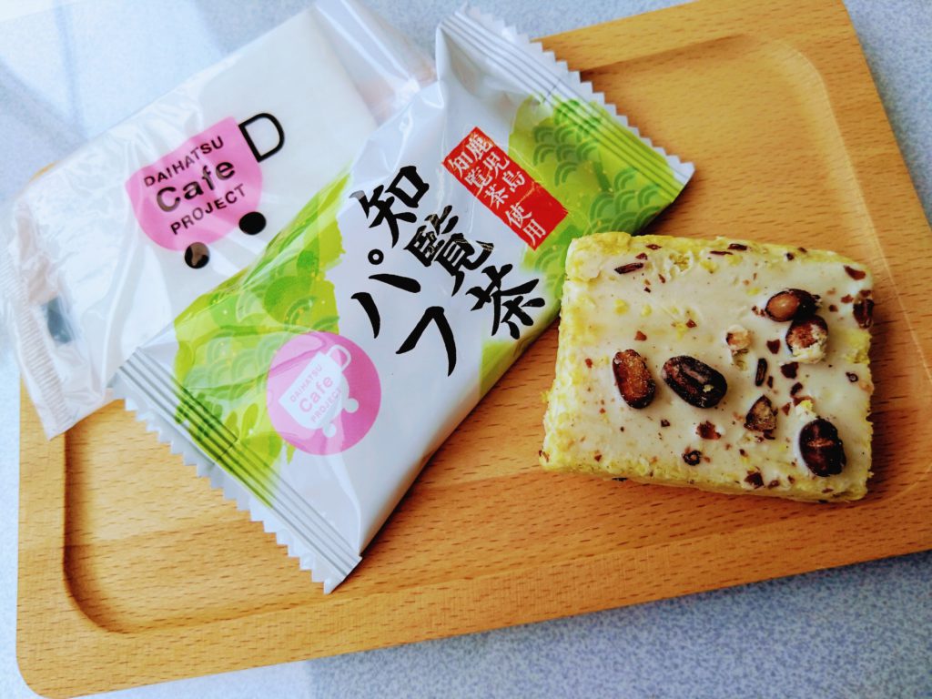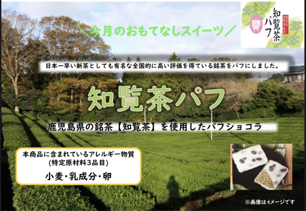 鹿児島県、知覧産のお茶を使用しており上に小豆がのったパフチョコになっております!