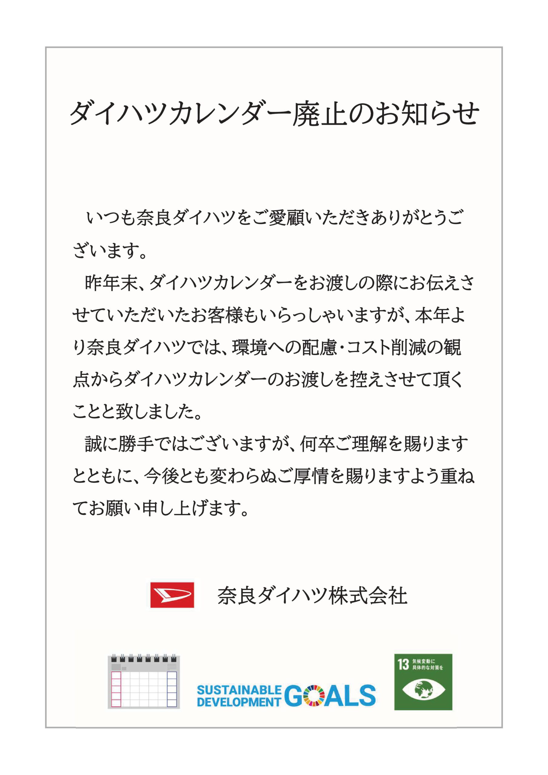 【ご案内】ダイハツカレンダー廃止のお知らせ