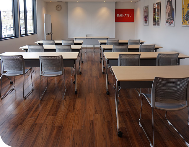 会議用テーブルが11台、会議用椅子が22脚、食卓用テーブル(ダイニングテーブル)が1台、食卓用椅子が8脚あり、人数に合わせてレイアウトを変更して使用して頂けます。またスクリーン、プロジェクターの貸し出しも行っているのでPC等を使ってのプレゼンなども可能です。